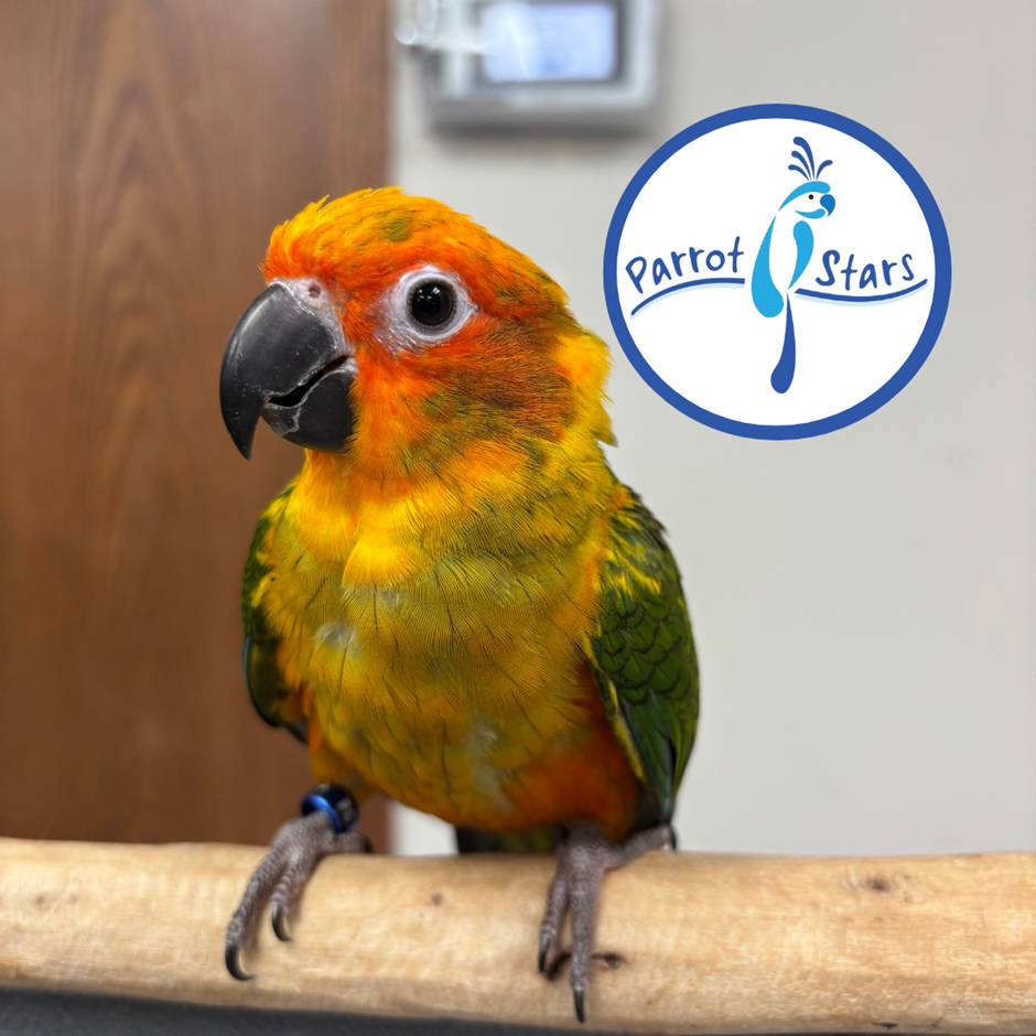 "Scientific Name: Aratinga solstitialis Native Range: South America The Sun Conure, also known as the Sun Parakeet, is a small sized parrot species within the family Psittacidae. It is characterized by vibrant yellow plumage with orange and red coloration on the head and body, along with green and blue on the wings and tail. In the wild, Sun Conures inhabit tropical and subtropical forests, savannas, and palm groves across northern South America. They nest in tree cavities and are typically found in small flocks. IUCN Conservation Status: Endangered At Parrot Stars, we prioritize education, welfare, and responsible parrot ownership to help ensure every bird finds and thrives in a forever home. Before taking home any parrot, we provide comprehensive guidance on proper caging and setup, positive reinforcement training, household safety, nutrition, and enrichment. Parrots in captivity are still wild animals with all their natural instincts. Your overall success and experience with any species of companion parrot is greatly impacted by positive reinforcement training. A parrot’s behavior reflects both the environment they live in and the training they receive. All of our hand-fed babies are hatched and raised in our own breeding facility and weaned onto a diverse, high-variety diet. Our parrots are never clipped and are fully flighted. Follow our Parrot Stars Podcast to learn all about our parrots, our purchase process, and our philosophy of parrot care."