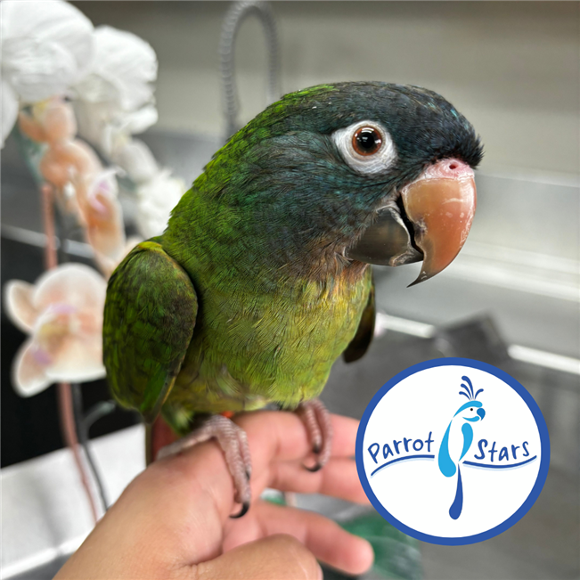 Scientific Name: Psittacara acuticaudatus Native Range: South America The Blue-crowned Conure is a medium-sized parrot species within the family Psittacidae. It is characterized by a predominantly green body, a distinct blue coloration on the head and crown, and a long tapered tail. Several subspecies are recognized, differing slightly in size, coloration, and geographic distribution. In the wild, Blue-crowned Conures inhabit a variety of environments, including dry forests, savannas, scrublands, and woodland edges across countries such as Brazil and Bolivia. They nest in tree cavities and are often found in small flocks. IUCN Conservation Status: Least Concern At Parrot Stars, we prioritize education, welfare, and responsible parrot ownership to help ensure every bird finds and thrives in a forever home. Before taking home any parrot, we provide comprehensive guidance on proper caging and setup, positive reinforcement training, household safety, nutrition, and enrichment. Parrots in captivity are still wild animals with all their natural instincts. Your overall success and experience with any species of companion parrot is greatly impacted by positive reinforcement training. A parrot’s behavior reflects both the environment they live in and the training they receive. All of our hand-fed babies are hatched and raised in our own breeding facility and weaned onto a diverse, high-variety diet. Our parrots are never clipped and are fully flighted. Follow our Parrot Stars Podcast to learn all about our parrots, our purchase process, and our philosophy of parrot care. Listen now: https://www.buzzsprout.com/2376122