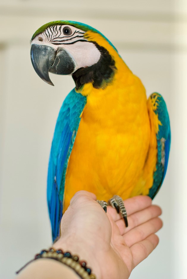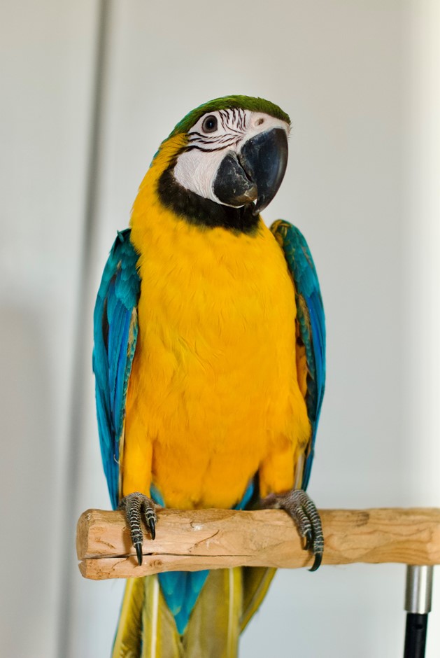 This beautiful girl is the last of our second group of macaw babies this summer. She is cuddly, cunning, and a total love bug. She is a fantastic flier. Extremely curious, and loves wooden toys. She is now fully weaned onto a diet of