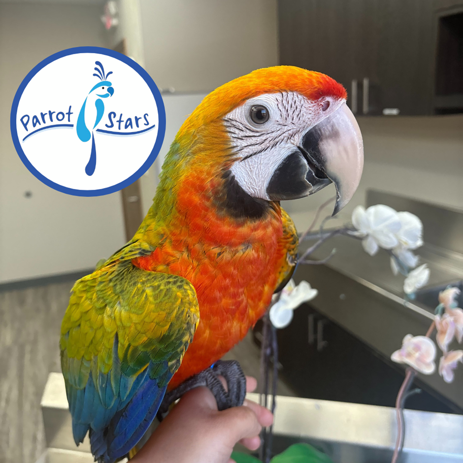 "Scientific Name: Ara spp. (Hybrid) Native Range: Not naturally occurring; produced in captivity The Camelot Macaw is a large hybrid macaw produced by crossing a Scarlet Macaw (Ara macao) with a Catalina Macaw, a hybrid of the Blue and Gold Macaw (Ara ararauna) and the Scarlet Macaw (Ara macao). As a result, Camelot Macaws do not occur in the wild and do not have a natural geographic range. Their coloration can vary but generally includes combinations of red, orange, yellow, and blue, inherited from their parent species. At Parrot Stars, we prioritize education, welfare, and responsible parrot ownership to help ensure every bird finds and thrives in a forever home. Before taking home any parrot, we provide comprehensive guidance on proper caging and setup, positive reinforcement training, household safety, nutrition, and enrichment. Parrots in captivity are still wild animals with all their natural instincts. Your overall success and experience with any species of companion parrot is greatly impacted by positive reinforcement training. A parrot’s behavior reflects both the environment they live in and the training they receive. All of our hand-fed babies are hatched and raised in our own breeding facility and weaned onto a diverse, high-variety diet. Our parrots are never clipped and are fully flighted. Follow our Parrot Stars Podcast to learn all about our parrots, our purchase process, and our philosophy of parrot care. Listen now: https://www.buzzsprout.com/2376122"
