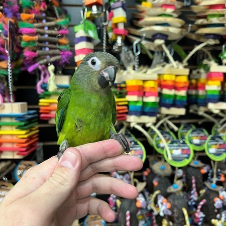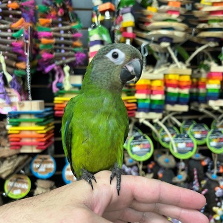Currently hand feeding is a sweet baby Dusky Conure. This species of Conure makes a great pet companion as they are very social and quieter than other Conures. Call us for more info 773-317-3785. We are located at 710 Lee St., Des Plaines, IL 60016.