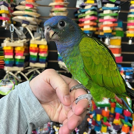 Currently hand feeding are sweet baby Blue Headed Pionus. This species of Pionus makes a great pet companion as they are laid back quiet birds, who can learn to talk and mimic sounds and are affectionate. For more info call 773-317-3785. We are now located at 710 Lee St. Des Plaines Il 60016.