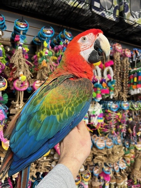 Hand fed very sweet and tame dna tested female Camelot Macaw Hybrid Red Dom available. For more info call 773-317-3785. We are located at 710 Lee St. Des Plaines Il 60016.
