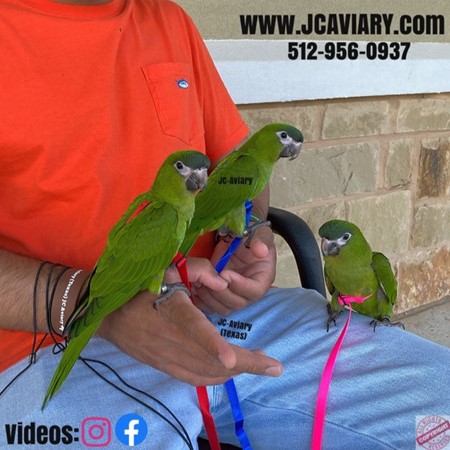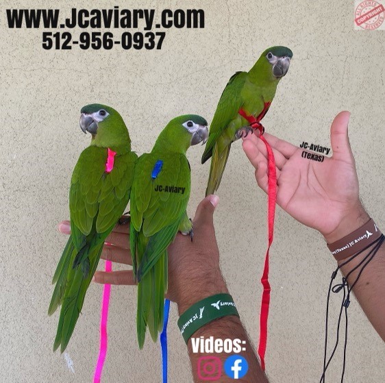 Incredibly sweet, hand-fed, tame and well trained Hahns mini-macaw babies ready now for their forever homes. They are weaned on a healthy diet of organic pellets and vegetables. All our babies are very well socialized, tame and sweet. Please visit our website for full detailed info on these babies -- www.Jcaviary.com-- Please call us to reserve your baby !! 512-956-0937 - Shipping available via Delta Airlines-- All babies are DISEASE TESTED and come with avian vet documents as well. (Deposit: $1500 required to reserve each baby) Videos available on Facebook: https://facebook.com/jcaviary