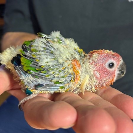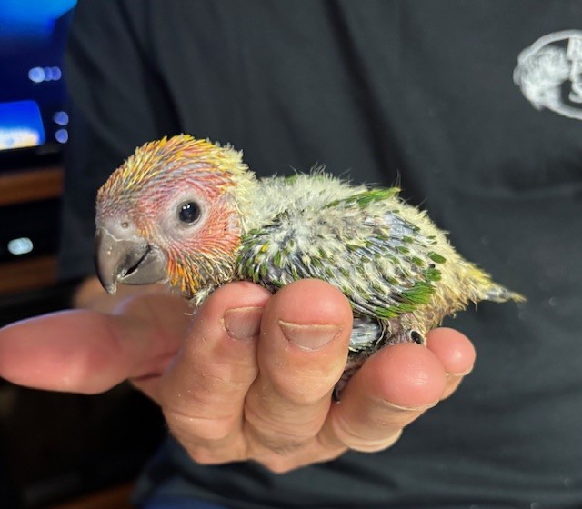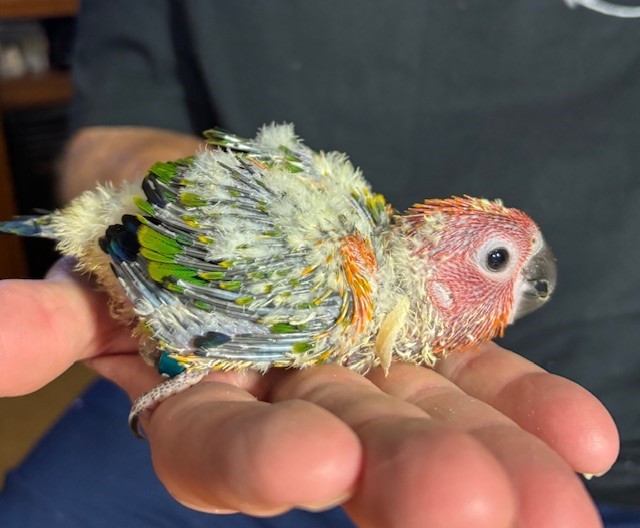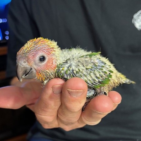 Red Factor Sun Conure - DNA Pending - being hand fed at this time - $750 weaned - will be weaned to eat a pellet diet - $50 deposit will hold this bird until it is weaned and eating well on its own and ready to be shipped. Shipping is with Delta for $165 and the shipping container is $35. Payment through Zelle or PayPal. 1422