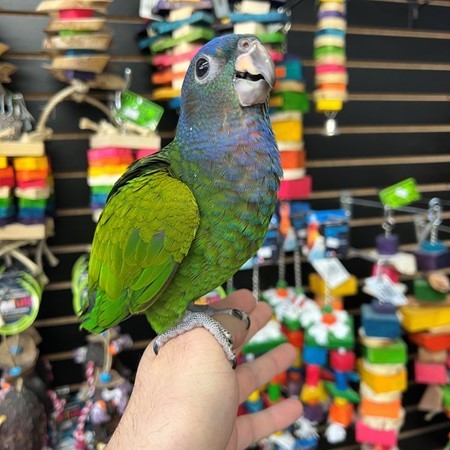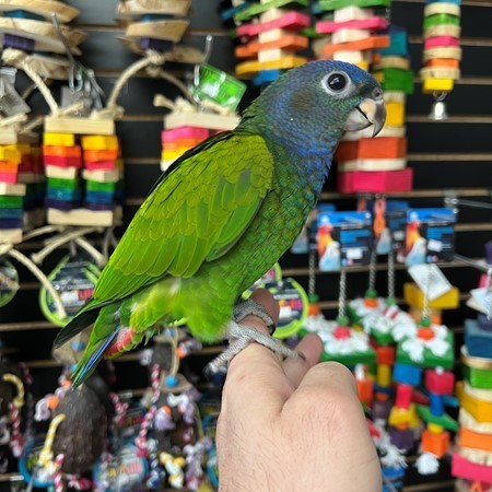 Currently hand feeding are sweet baby Blue Headed Pionus. This species of Pionus makes a great pet companion as they are laid back quiet birds, who can learn to talk and mimic sounds and are affectionate. For more info call 773-317-3785. We are now located at 710 Lee St. Des Plaines Il 60016.