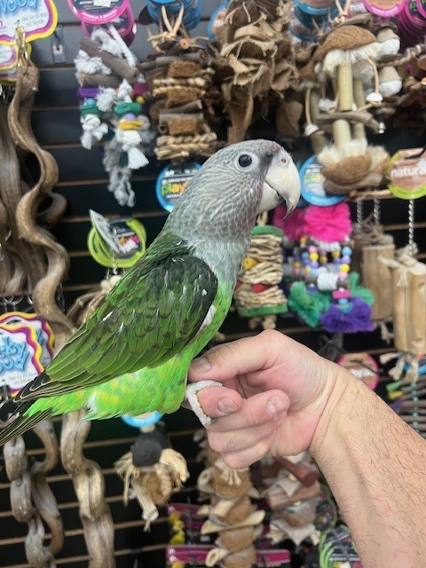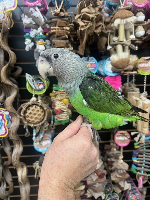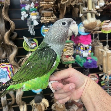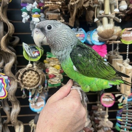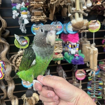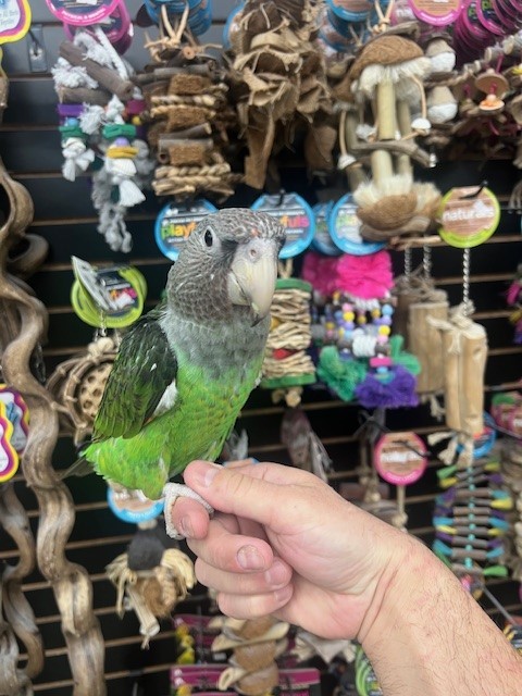 Just weaned and ready for its new home is a sweet baby dna tested female Cape Parrot. For more info call 773-317-3785. We are located at 710 Lee St. Des Plaines Il 60016.
