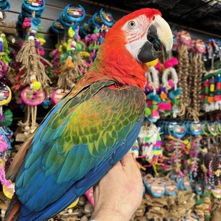 Hand fed very sweet and tame dna tested female Camelot Macaw Hybrid Red Dom available. For more info call 773-317-3785. We are located at 710 Lee St. Des Plaines Il 60016.