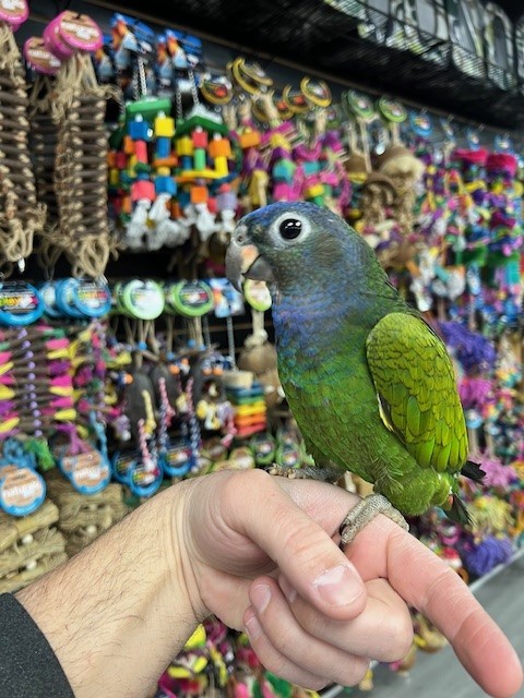 Currently hand feeding are sweet baby Blue Headed Pionus. This species of Pionus makes a great pet companion as they are laid back quiet birds, who can learn to talk and mimic sounds and are affectionate. For more info call 773-317-3785. We are now located at 710 Lee St. Des Plaines Il 60016.