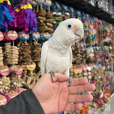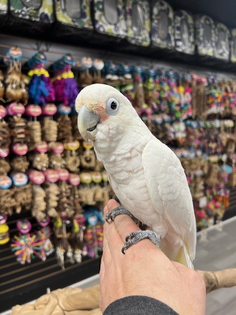 Goffins Cockatoo available say hi to "ARGO" he loves to fly and will fly to you and loves to ride on your shoulder and is very cuddly and friendly. For more info call 773-317-3785. We are located at 710 Lee St., Des Plaines, IL 60016.