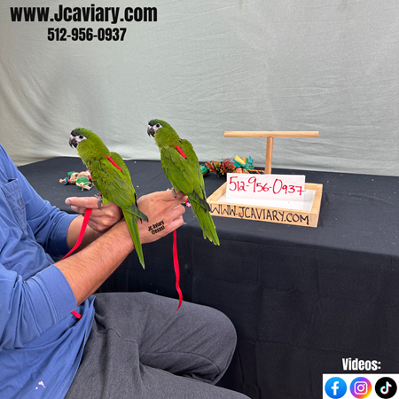 Incredibly sweet, hand-fed, tame and well trained Hahns mini-macaw babies ready now for their forever homes. They are weaned on a healthy diet of organic pellets and vegetables. All our babies are very well socialized, tame and sweet. Please visit our website for full detailed info on these babies -- www.Jcaviary.com-- Please call us to reserve your baby !! 512-956-0937 - Shipping available via Delta Airlines-- All babies are DISEASE TESTED and come with avian vet documents as well. (Deposit: $1500 required to reserve each baby) Videos available on Facebook: https://facebook.com/jcaviary