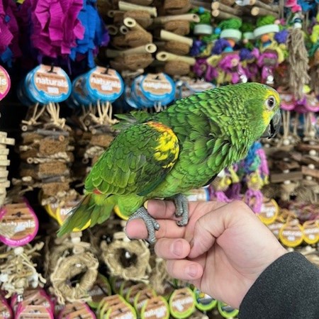 Blue Front Amazon hand fed baby available ready for its new home. For more info call 773-317-3785. We are located at 710 Lee St., Des Plaines, IL 60016.