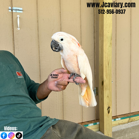 MALE, Incredibly sweet, hand-fed, tame and fully trained Moluccan cockatoo baby ready now for his forever homes. He is weaned on a healthy diet of organic pellets and vegetables. All our babies are very well socialized, tame and sweet. Please visit our website for full detailed info on these babies -- www.Jcaviary.com-- Please call us to reserve your baby !! 512-956-0937 - Shipping available via Delta Airlines-- All babies are DISEASE TESTED and come with avian vet documents as well. (Deposit: $5000 required to reserve each baby) Videos available on Facebook: https://facebook.com/jcaviary
