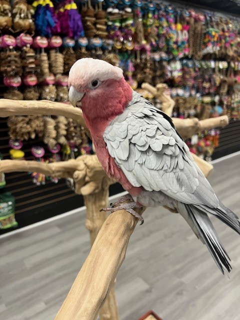 Rose Breasted Cockatoo available she's a very loving and sweet cuddly bird. For more info call 773-317-3785. We are located at 710 Lee St., Des Plaines, IL 60016.