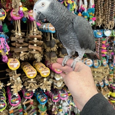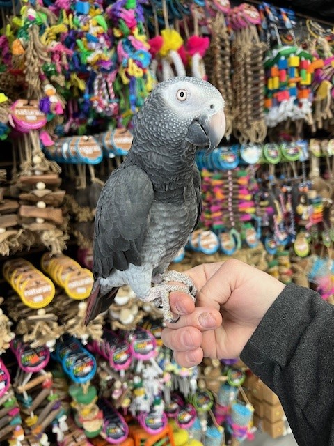 Hand tame and talkative Timneh African Grey adult available. For more info call 773-317-3785. We are located at 710 Lee St., Des Plaines, IL 60016.