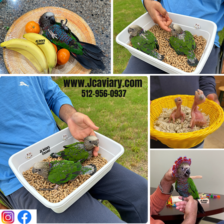 Accepting reservations on these rare hawk headed parrot babies. They are currently being hand-fed and will be fully trained as well. They will be on a healthy diet of organic pellets and vegetables. All our babies are very well socialized, tame and sweet. Please visit our website for full detailed info on these babies -- www.Jcaviary.com-- Please call us to reserve your baby !! 512-956-0937 - Shipping available via Delta Airlines-- All babies are DISEASE TESTED and come with avian vet documents as well. (Deposit: $5000 required to reserve each baby) Videos available on Facebook: https://facebook.com/jcaviary