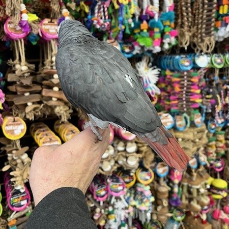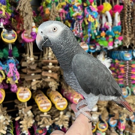 Hand tame and talkative Timneh African Grey adult available. For more info call 773-317-3785. We are located at 710 Lee St., Des Plaines, IL 60016.