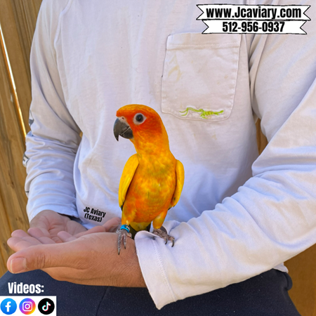 Accepting reservation on the beautiful platinum HIGH YELLOW sun conure baby. This baby is currently still being hand-fed and will be fully trained as well. They will be on a healthy diet of organic pellets and vegetables. All our babies are very well socialized, tame and sweet. Please visit our website for full detailed info on these babies -- www.Jcaviary.com-- Please call us to reserve your baby !! 512-956-0937 - Shipping available via Delta Airlines-- All babies are DISEASE TESTED and come with avian vet documents as well. (Deposit: 500 required to reserve each baby) Videos available on Facebook: https://facebook.com/jcaviary