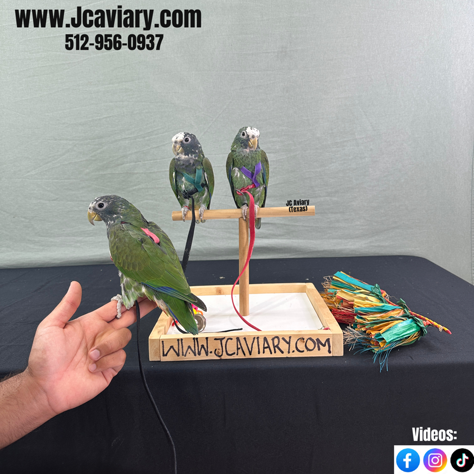 Incredibly sweet and fully trained White capped pionus babies ready now for their forever homes. They are weaned on a healthy diet of organic pellets and vegetables. All our babies are very well socialized, tame and sweet. Please visit our website for full detailed info on these babies -- www.Jcaviary.com-- Please call us to reserve your baby !! 512-956-0937 - Shipping available via Delta Airlines-- All babies are DISEASE TESTED and come with avian vet documents as well. (Deposit: $1500 required to reserve each baby) Videos available on Facebook: https://facebook.com/jcaviary