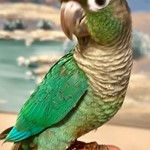 Sunny is an adorable red factor pineapple green cheek conure. Tame, currently being hand fed, and will be weaned and is ready to go by the end of February. Wellness checked. Well socialized. Parents are tested and disease free. Very sweet, loves cuddles Stunning colors, gorgeous little birdie. Local pick up is available. Free cage with local pick up.