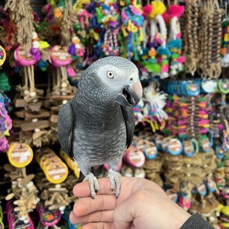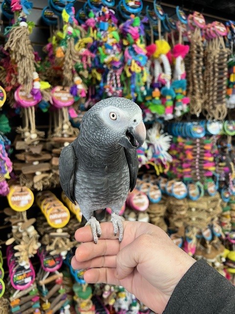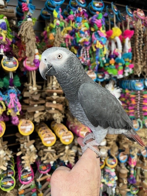 Hand tame and talkative Timneh African Grey adult available. For more info call 773-317-3785. We are located at 710 Lee St., Des Plaines, IL 60016.