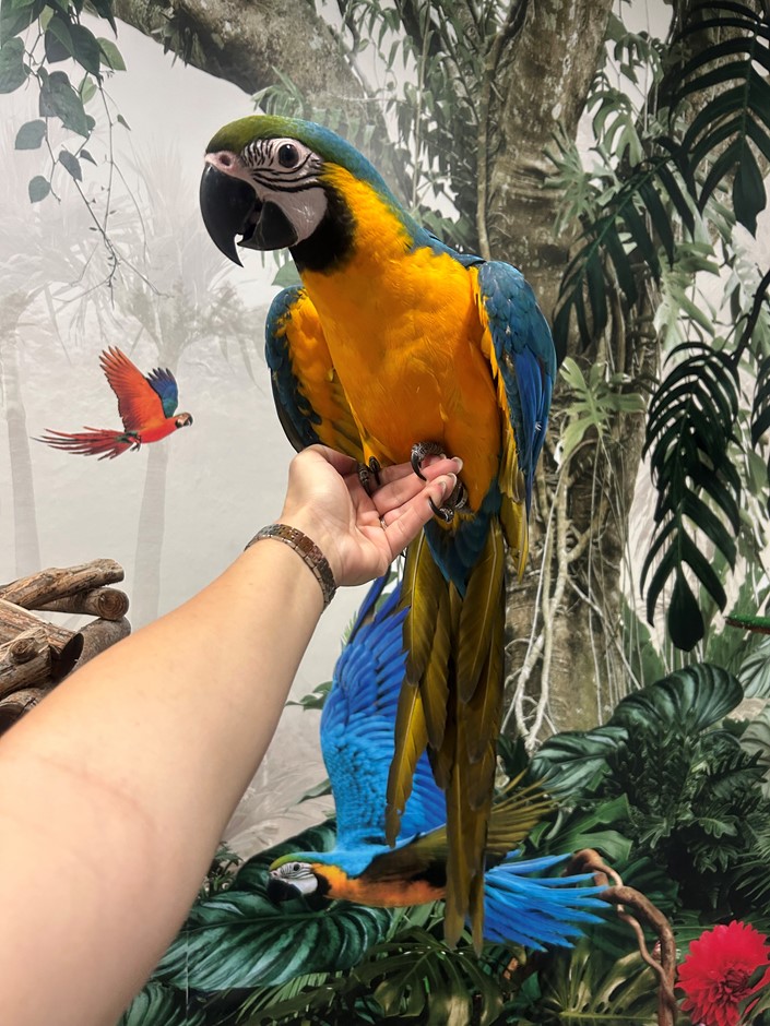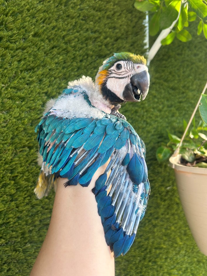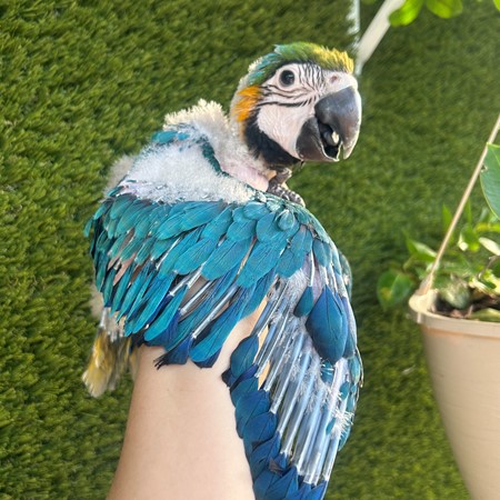 Large, friendly, and social macaw with vibrant colors and a playful personality. Great family bird with proper training and attention🦜