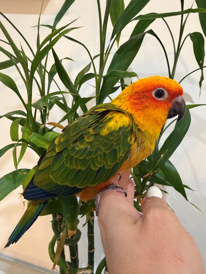 A vibrant and affectionate parrot known for its bright yellow, orange, and green feathers. Highly social, playful, and full of personality🦜