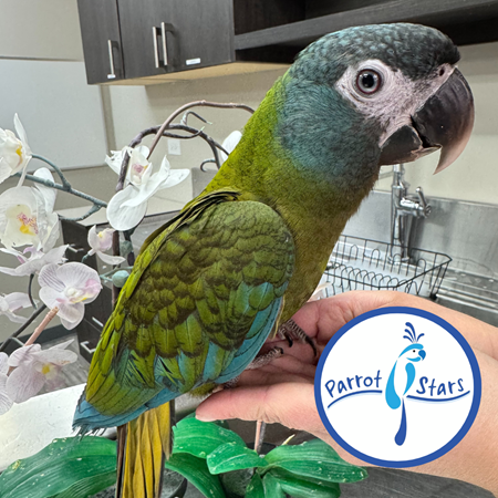 "Scientific Name: Primolius couloni Native Range: Amazon Basin, South America The Blue-headed Macaw, also known as Coulon’s Macaw, is a small macaw species within the family Psittacidae. It is characterized by its distinctive blue head and nape, green body plumage, and long tapered tail. As adults their faces usually turn a dark gray. In the wild, Blue-headed Macaws inhabit lowland tropical rainforests, forest edges, bamboo thickets, and riverine forests across regions of Peru, western Brazil, and northern Bolivia. They nest in tree cavities and are typically found in pairs or small groups. IUCN Conservation Status: Vulnerable At Parrot Stars, we prioritize education, welfare, and responsible parrot ownership to help ensure every bird finds and thrives in a forever home. Before taking home any parrot, we provide comprehensive guidance on proper caging and setup, positive reinforcement training, household safety, nutrition, and enrichment. Parrots in captivity are still wild animals with all their natural instincts. Your overall success and experience with any species of companion parrot is greatly impacted by positive reinforcement training. A parrot’s behavior reflects both the environment they live in and the training they receive. All of our hand-fed babies are hatched and raised in our own breeding facility and weaned onto a diverse, high-variety diet. Our parrots are never clipped and are fully flighted. Follow our Parrot Stars Podcast to learn all about our parrots, our purchase process, and our philosophy of parrot care."