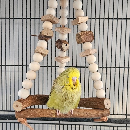 An Exhibition English Budgie, while larger and fluffier than your typical pet budgie, can make a charming companion. They’re known for their gentle and inquisitive nature, often bonding closely with their human. Though bred for show, they’re still playful, enjoy interactive toys, and thrive on attention. Their striking size and features make them a standout both in looks and in personality, offering a lovely addition to any bird-loving household.