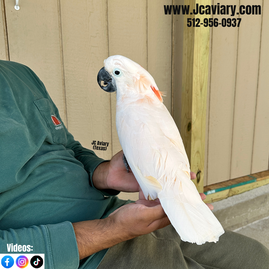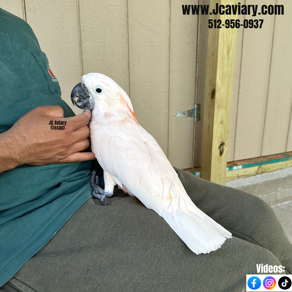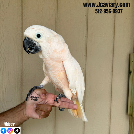 MALE, Incredibly sweet, hand-fed, tame and fully trained Moluccan cockatoo baby ready now for his forever homes. He is weaned on a healthy diet of organic pellets and vegetables. All our babies are very well socialized, tame and sweet. Please visit our website for full detailed info on these babies -- www.Jcaviary.com-- Please call us to reserve your baby !! 512-956-0937 - Shipping available via Delta Airlines-- All babies are DISEASE TESTED and come with avian vet documents as well. (Deposit: $5000 required to reserve each baby) Videos available on Facebook: https://facebook.com/jcaviary