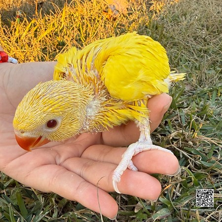 Yellow Indian Ringneck Parakeet baby available. This beautiful yellow (lutino) Indian Ringneck has been hand raised from a very young age and is fully hand tamed, making it an excellent companion bird. Our handfeeding process focuses on gentle daily handling, socialization, and confidence building to ensure a calm, friendly, and people-oriented parrot. This baby Indian Ringneck is used to human interaction and is comfortable being handled, and spending time with people. Hand raised Indian Ringneck parakeets are known for their intelligence, playful personality, and strong bonding ability with their owners. With proper care and continued interaction, this bird has excellent potential for learning words, whistles, and basic commands. Yellow Indian Ringnecks are highly sought after for their bright, vibrant color and elegant appearance. This mutation features a stunning solid yellow body with a clean, eye-catching look that stands out from standard green ringnecks. Indian Ringneck parakeets are medium-sized parrots, making them ideal for families, first-time bird owners, and experienced parrot enthusiasts alike. This baby is healthy, active, and raised in a clean, caring environment. It is eating well and transitioning properly to solid foods at the appropriate age. We prioritize quality nutrition, proper weaning, and stress-free development to give each bird the best possible start in life. Indian Ringneck parakeets are known for their long lifespan, intelligence, and engaging personalities. When hand tamed and properly trained, they become affectionate, social companions that thrive on interaction. This yellow Indian Ringneck baby would be a wonderful addition to a loving home looking for a friendly, well-socialized parrot. If you are searching for a hand raised yellow Indian Ringneck parakeet for sale, this baby is an excellent choice. Serious inquiries only. Shipping options and local pickup may be available depending on location.
