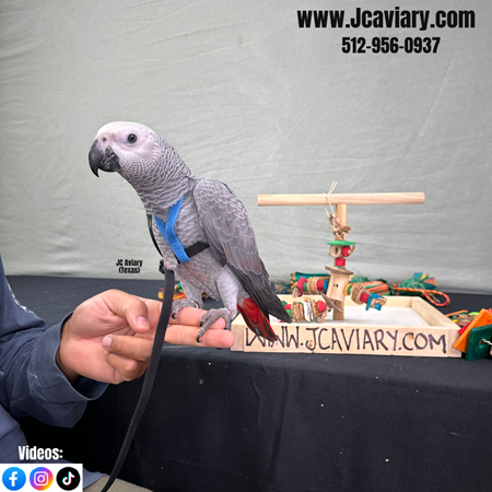 Incredibly sweet, hand-fed, tame and fully trained Congo African grey baby ready now for her forever homes. She is weaned on a healthy diet of organic pellets and vegetables. All our babies are very well socialized, tame and sweet. Please visit our website for full detailed info on these babies -- www.Jcaviary.com-- Please call us to reserve your baby !! 512-956-0937 - Shipping available via Delta Airlines-- All babies are DISEASE TESTED and come with avian vet documents as well. (Deposit: $2500 required to reserve each baby) Videos available on Facebook: https://facebook.com/jcaviary