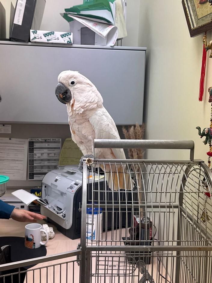 Jojo is a Moluccan Cockatoo who has been part of the family for over 40 years. She is a very sweet bird once she gets to know her family and enjoys close interaction and bonding. Jojo loves being pet and groomed and has been a bit spoiled over the years. She has a varied diet and especially enjoys oatmeal with bananas fed to her on a spoon. She also likes taquitos, along with a regular diet of fruits and vegetables, parrot mix, and peanuts. Jojo has always been a very healthy bird. In recent years, however, she has needed regular beak trims or dremeling due to an old injury involving a male Moluccan Cockatoo several years ago. Please call if you are interested: 4158605624