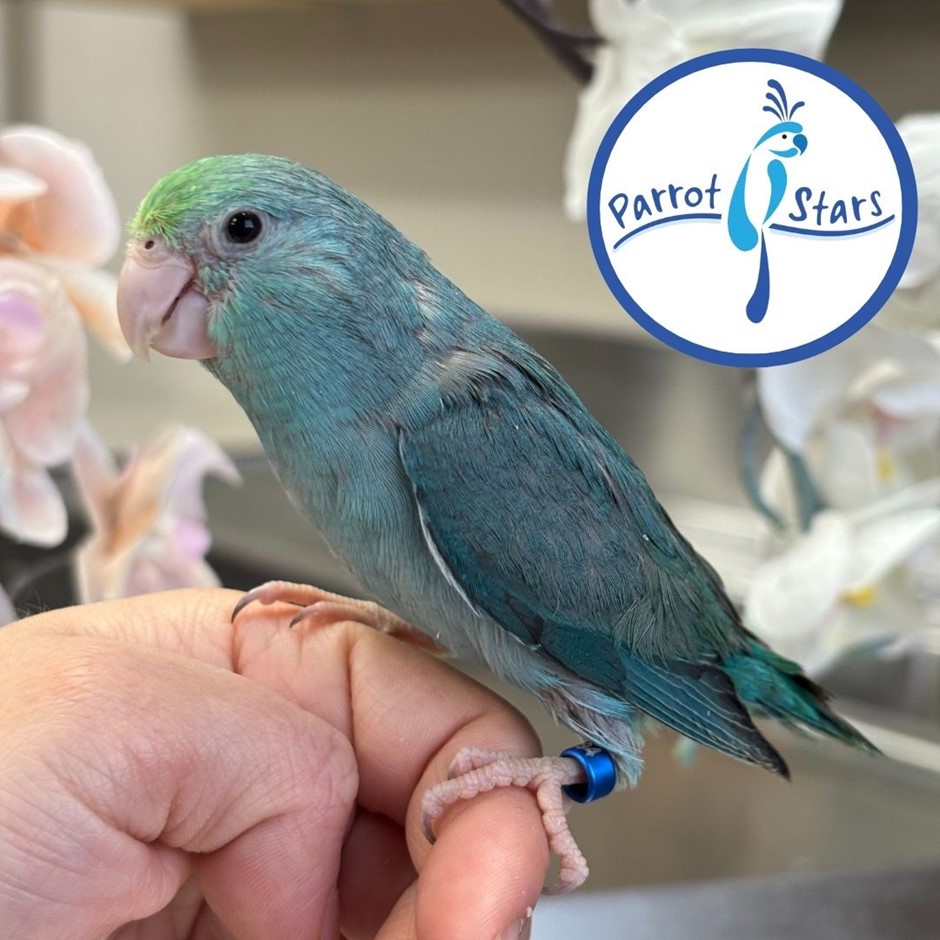 "Scientific Name: Forpus coelestis (Pacific Parrotlet) Native Range: Western Coast, South America The Pacific Parrotlet is an extremely small parrot species within the family Psittacidae and is one of several species commonly referred to as parrotlets. It is characterized by predominantly green plumage, with males typically displaying cobalt-blue markings on the rump, wings, and behind the eyes, while females lack these blue patches. This species is sexually dimorphic. In the wild, Pacific Parrotlets inhabit dry forests, scrublands, and semi-arid regions of western Ecuador and northwestern Peru. They nest in tree cavities and are often observed in small flocks. IUCN Conservation Status: Least Concern At Parrot Stars, we prioritize education, welfare, and responsible parrot ownership to help ensure every bird finds and thrives in a forever home. Before taking home any parrot, we provide comprehensive guidance on proper caging and setup, positive reinforcement training, household safety, nutrition, and enrichment. Parrots in captivity are still wild animals with all their natural instincts. Your overall success and experience with any species of companion parrot is greatly impacted by positive reinforcement training. A parrot’s behavior reflects both the environment they live in and the training they receive. All of our hand-fed babies are hatched and raised in our own breeding facility and weaned onto a diverse, high-variety diet. Our parrots are never clipped and are fully flighted. Follow our Parrot Stars Podcast to learn all about our parrots, our purchase process, and our philosophy of parrot care."
