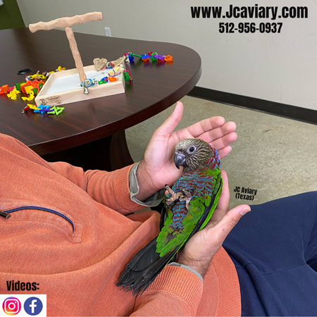 Please call for price and details. Serious inquires only!! Very rare hawk-headed parrot baby ready for his forever home. Fully trained by us as well. All our babies are Extremely sweet and very well socialized so you'll get to snuggle and play with him/her right away. Please see our website for detailed information! For all inquiries please call us-- 512-(9)-56-09(37) -- no texting!! Please visit our website for full detailed info on these babies -- www.Jcaviary.com-- Please call us to reserve your baby !! 512-956-0937 - Shipping available via Delta Airlines-- All babies are DISEASE TESTED and come with avian vet documents as well. (Deposit: $5000 required to reserve each baby) Videos available on Facebook: https://facebook.com/jcaviary