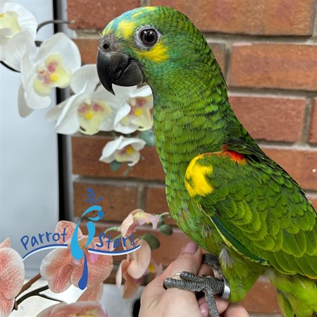 All of our hand-fed babies are hatched and raised in our own breeding facility and weaned onto a diverse, high-variety diet. Our parrots are never clipped and are fully flighted.