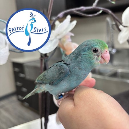"Scientific Name: Forpus coelestis (Pacific Parrotlet) Native Range: Western Coast, South America The Pacific Parrotlet is an extremely small parrot species within the family Psittacidae and is one of several species commonly referred to as parrotlets. It is characterized by predominantly green plumage, with males typically displaying cobalt-blue markings on the rump, wings, and behind the eyes, while females lack these blue patches. This species is sexually dimorphic. In the wild, Pacific Parrotlets inhabit dry forests, scrublands, and semi-arid regions of western Ecuador and northwestern Peru. They nest in tree cavities and are often observed in small flocks. IUCN Conservation Status: Least Concern At Parrot Stars, we prioritize education, welfare, and responsible parrot ownership to help ensure every bird finds and thrives in a forever home. Before taking home any parrot, we provide comprehensive guidance on proper caging and setup, positive reinforcement training, household safety, nutrition, and enrichment. Parrots in captivity are still wild animals with all their natural instincts. Your overall success and experience with any species of companion parrot is greatly impacted by positive reinforcement training. A parrot’s behavior reflects both the environment they live in and the training they receive. All of our hand-fed babies are hatched and raised in our own breeding facility and weaned onto a diverse, high-variety diet. Our parrots are never clipped and are fully flighted. Follow our Parrot Stars Podcast to learn all about our parrots, our purchase process, and our philosophy of parrot care."