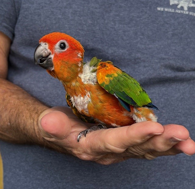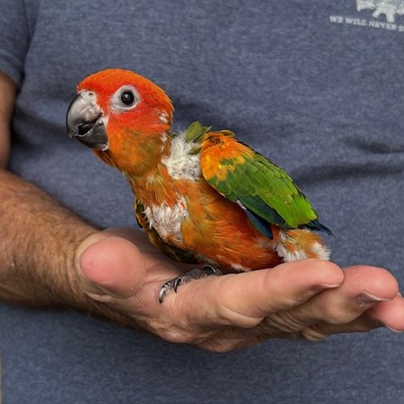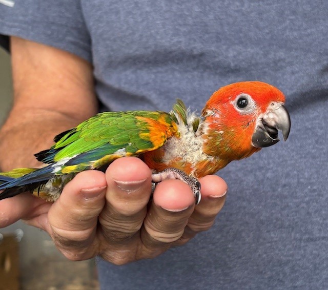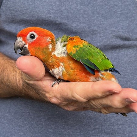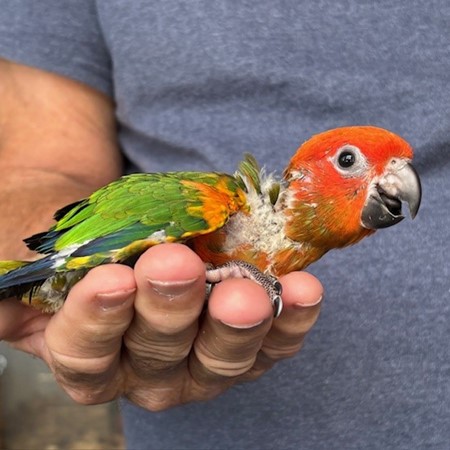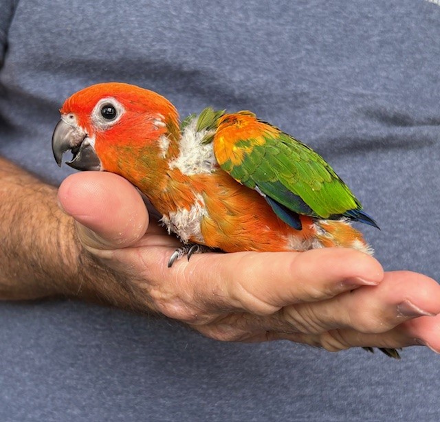Red Factor Sun Conure - DNA Male - being hand fed at this time - $700 weaned - will be weaned to eat a pellet diet - $50 deposit will hold this bird until it is weaned and eating well on its own and ready to be shipped. Shipping is with Delta Airlines for $165 and the shipping container is $35. Payment through Zelle or PayPal. 313 O