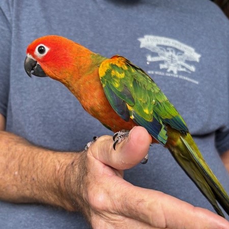 Red Factor Sun Conure - DNA Female - $700 - Recently weaned from hand feeding - now eating a pellet diet -She is a sweetie - ready to ship. Shipping is with Delta Airlines for $165 and the shipping container is $35. Payment through Zelle or PayPal 1422 A