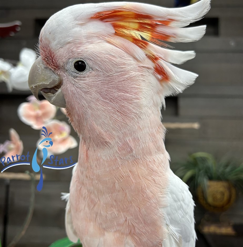 Major Mitchell’s Cockatoo, also known as the Pink Cockatoo, is an extremely intelligent medium-sized cockatoo species within the family Cacatuidae. This species is known for its distinctive soft pink and white plumage and its prominent crest, which displays bands of red, yellow, and white when raised. Major Mitchell’s Cockatoos are monomorphic in overall appearance, though subtle differences in eye color can occur between sexes. In the wild, they inhabit arid and semi-arid regions of Australia, including open woodlands, shrublands, and desert areas.