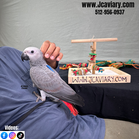 Incredibly sweet, hand-fed, tame and fully trained Congo African grey baby ready now for her forever homes. She is weaned on a healthy diet of organic pellets and vegetables. All our babies are very well socialized, tame and sweet. Please visit our website for full detailed info on these babies -- www.Jcaviary.com-- Please call us to reserve your baby !! 512-956-0937 - Shipping available via Delta Airlines-- All babies are DISEASE TESTED and come with avian vet documents as well. (Deposit: $2500 required to reserve each baby) Videos available on Facebook: https://facebook.com/jcaviary