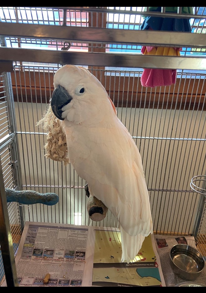 Jojo is a Moluccan Cockatoo who has been part of the family for over 40 years. She is a very sweet bird once she gets to know her family and enjoys close interaction and bonding. Jojo loves being pet and groomed and has been a bit spoiled over the years. She has a varied diet and especially enjoys oatmeal with bananas fed to her on a spoon. She also likes taquitos, along with a regular diet of fruits and vegetables, parrot mix, and peanuts. Jojo has always been a very healthy bird. In recent years, however, she has needed regular beak trims or dremeling due to an old injury involving a male Moluccan Cockatoo several years ago. Please call if you are interested: 4158605624