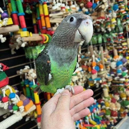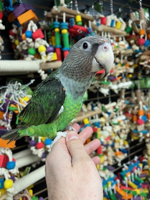Hand fed and ready for its new home is a sweet baby Cape Parrot. For more info call 773-317-3785. We are located at 710 Lee St. Des Plaines Il 60016.