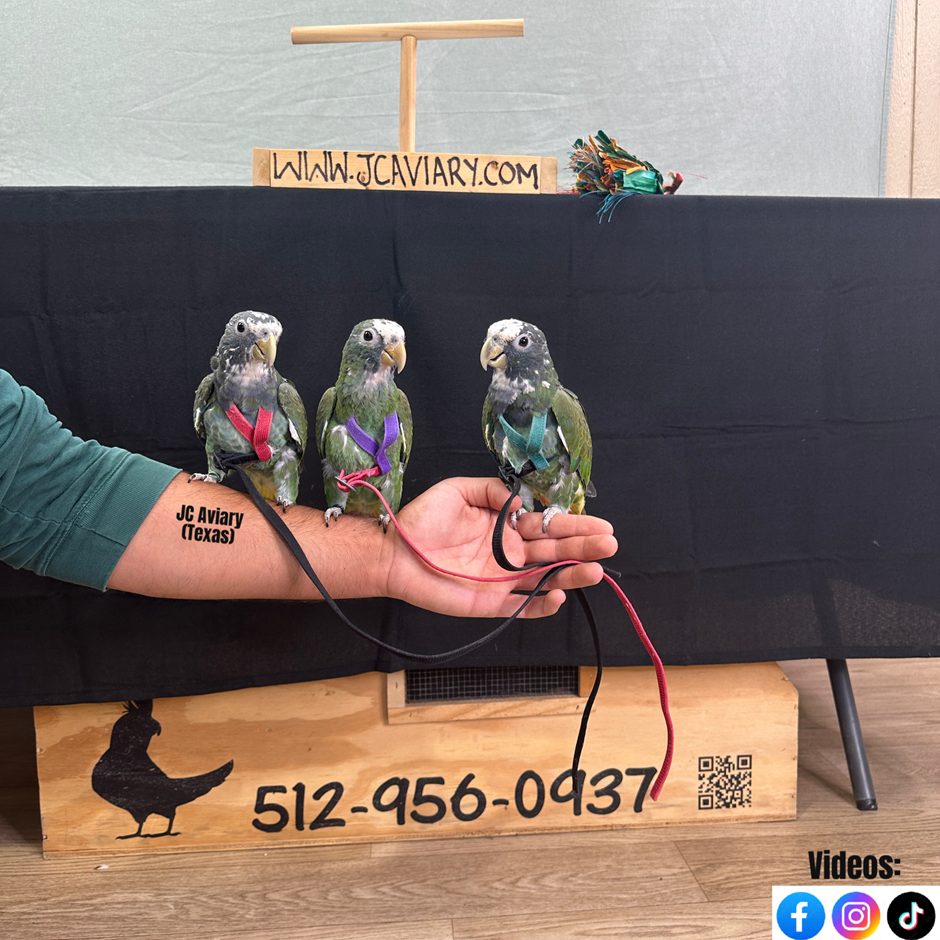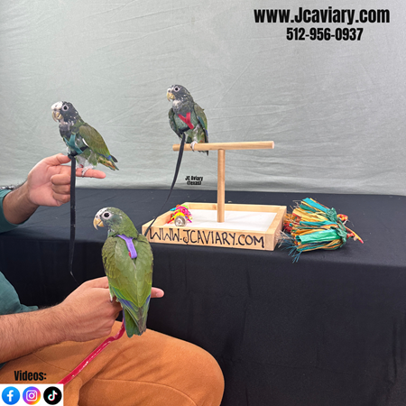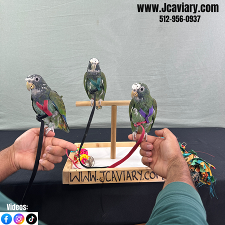 Incredibly sweet and fully trained White capped pionus babies ready now for their forever homes. They are weaned on a healthy diet of organic pellets and vegetables. All our babies are very well socialized, tame and sweet. Please visit our website for full detailed info on these babies -- www.Jcaviary.com-- Please call us to reserve your baby !! 512-956-0937 - Shipping available via Delta Airlines-- All babies are DISEASE TESTED and come with avian vet documents as well. (Deposit: $1500 required to reserve each baby) Videos available on Facebook: https://facebook.com/jcaviary