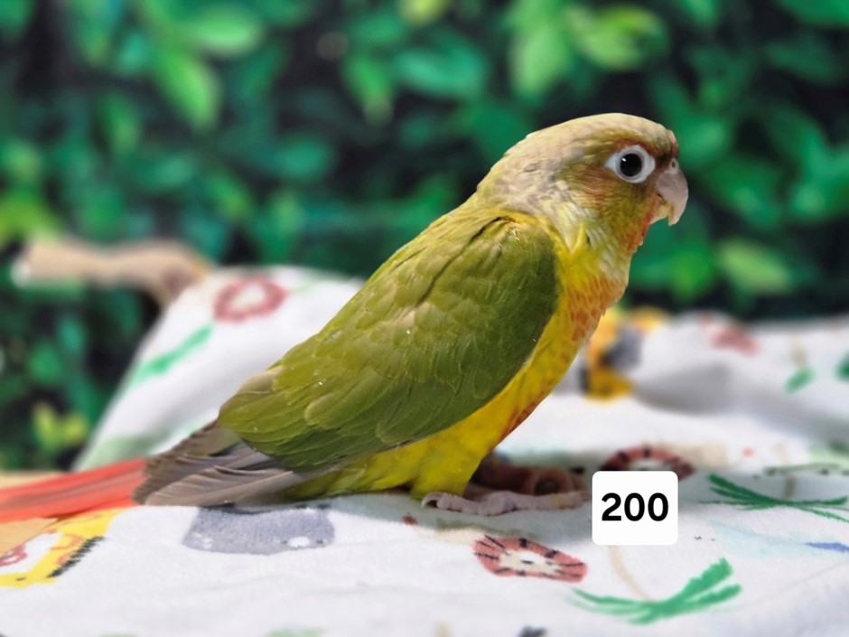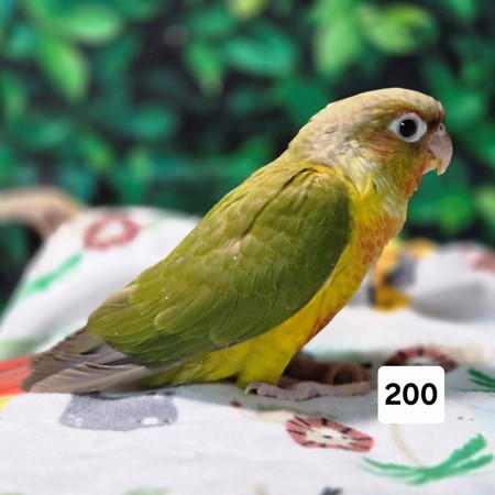 Meet this sweet little pineapple green cheek conure boy, hatched January 15, 2026 and already showing off that classic mix of charm, curiosity, and cuddly personality. He’s being handfed and socialized daily, making him a wonderful companion for anyone looking for a loving, interactive feathered friend.