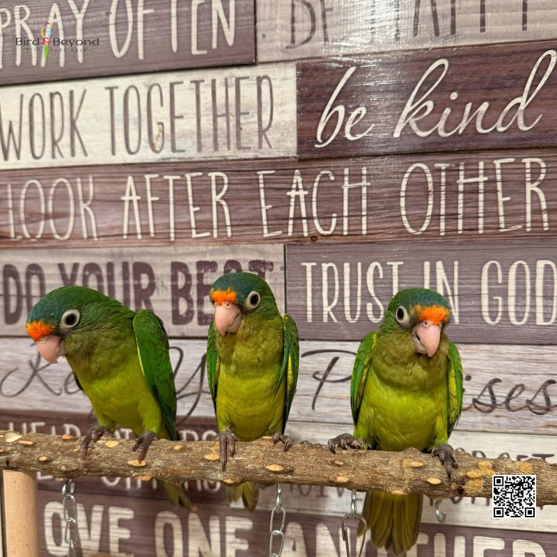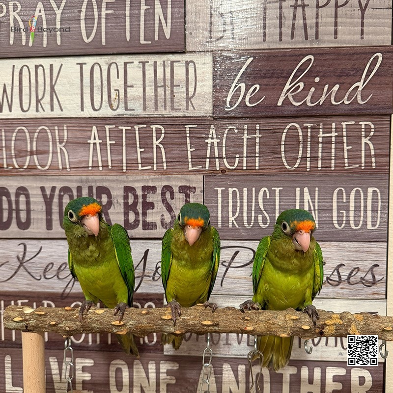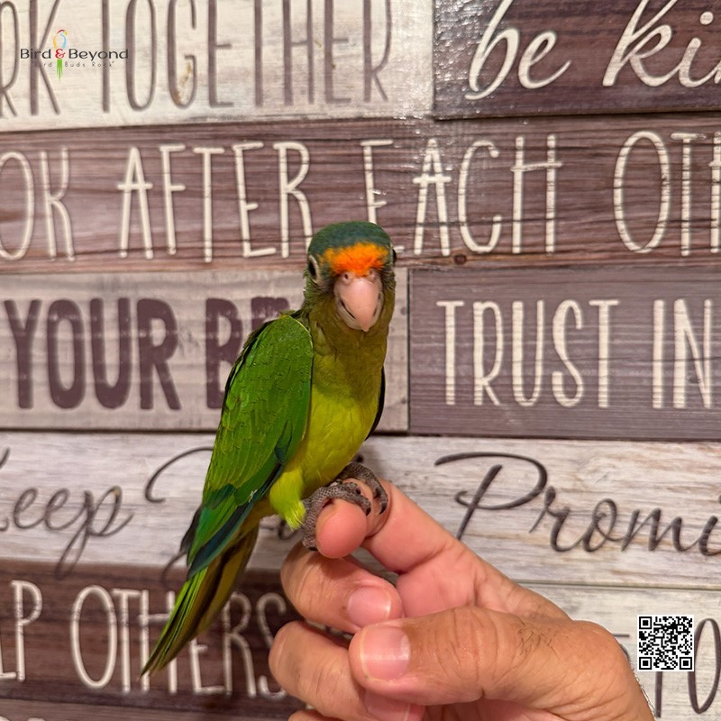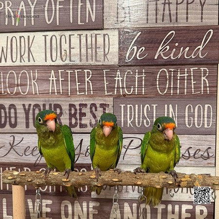 Meet this precious Half Moon Conure baby 💚🌙 Just look at that tiny splash of orange on the forehead and those bright, curious eyes. This little one is at that magical stage — freshly feathering, learning balance, discovering the world one gentle step at a time. Every day brings new sounds, new trust, and new personality. Half Moon Conures are known for their playful spirit, affectionate nature, and impressive intelligence. They bond deeply with their people and love being involved in daily life — whether it’s sitting on your shoulder, exploring safe spaces, or softly chattering to get your attention. Don’t let the small size fool you… these little parrots have BIG personalities. This baby is being hand-raised with care, socialized daily, and gently introduced to human interaction to build confidence and trust from the very beginning. Early nurturing makes all the difference in creating a sweet, well-adjusted companion for years to come. Imagine: • Morning greetings with soft chirps • Tiny feet wrapped around your finger • A loyal feathered friend who recognizes your voice • A lifetime bond built on trust and love Half Moon Conures thrive with patient, loving owners who want more than just a pet — they want a companion. If you’ve been searching for a smaller conure with charm, intelligence, and affectionate energy, this baby might just steal your heart. Message us to learn more about this beautiful little soul. 💚