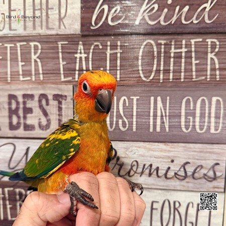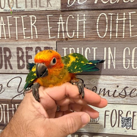 If you’re looking for a bold, beautiful parrot with a big personality and an even bigger heart — this Sun Conure baby may be the perfect addition to your family.