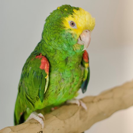 Lola is a DNA sexed Double Yellow Headed Amazon. She talks, whistles, "Polly want a cracker" she also speaks Spanish. She was DNA sexed and disease tested against PBFD, Pachecos, Polyoma, ABV, and Chlamydia. She's picky and choosey about who can handle her- typical amazon.
