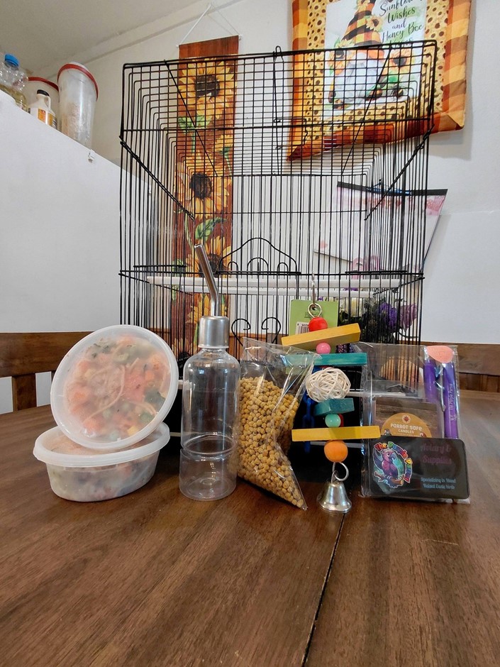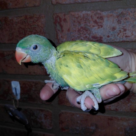 Green Lace Wing. Tested Negative: PBFD & Polyoma DNA Female. Comes with testing paperwork. WATER BOTTLE TRAINED. No Shipping; Pick up only. Comes with traveling cage, Chop, Pellets, New Toy Water bottle and gift packet for new family (See Picture) ***Cages and toys may vary