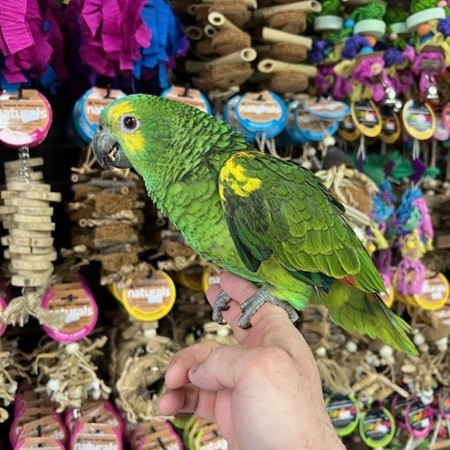 Blue Front Amazon hand fed baby available ready for its new home. For more info call 773-317-3785. We are located at 710 Lee St., Des Plaines, IL 60016.